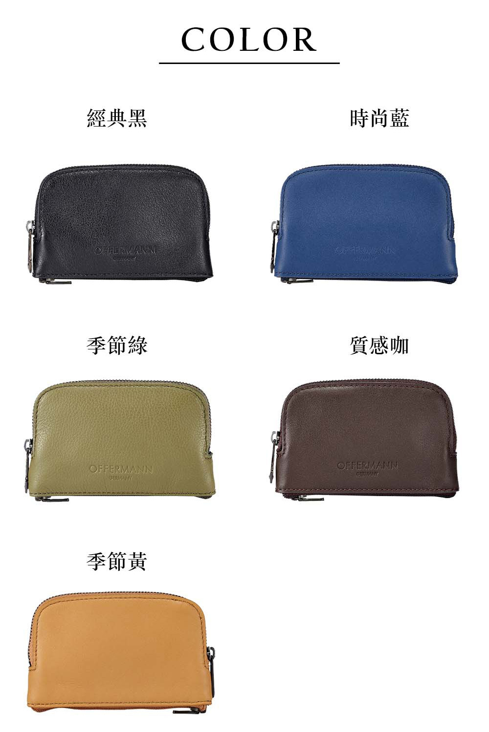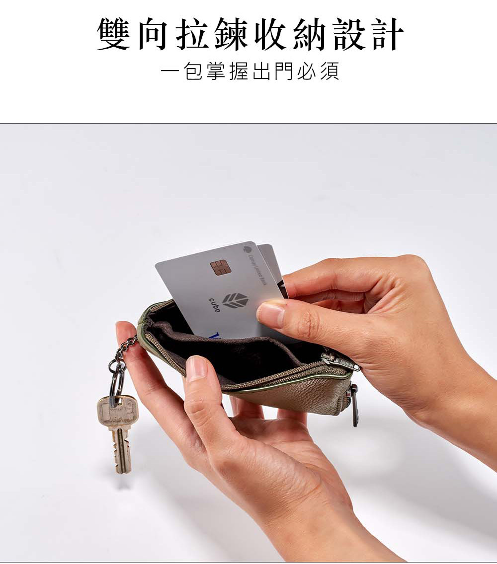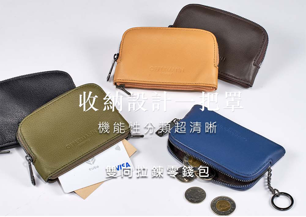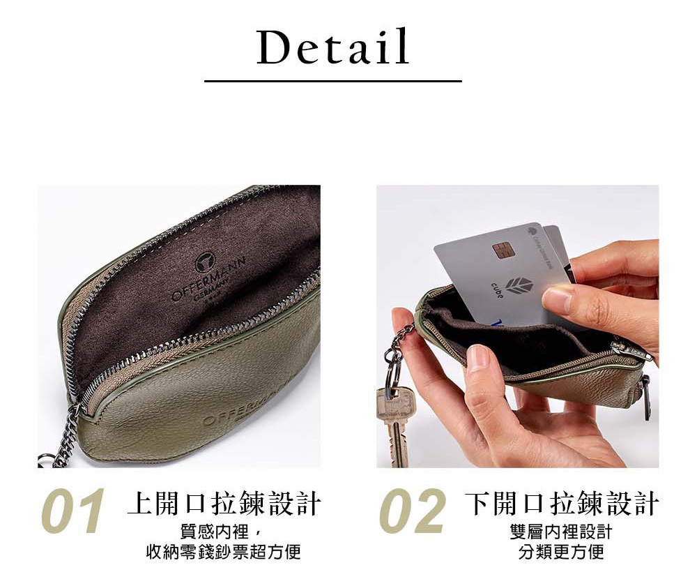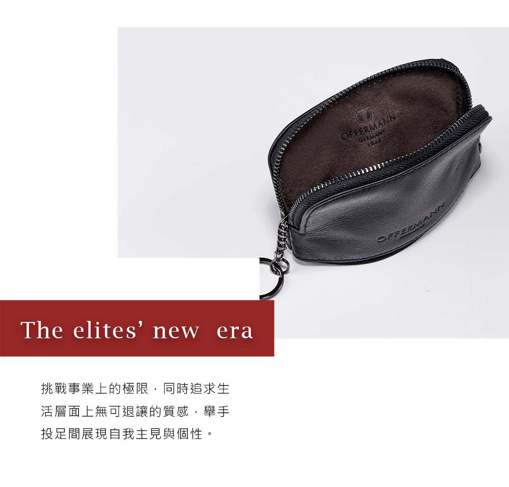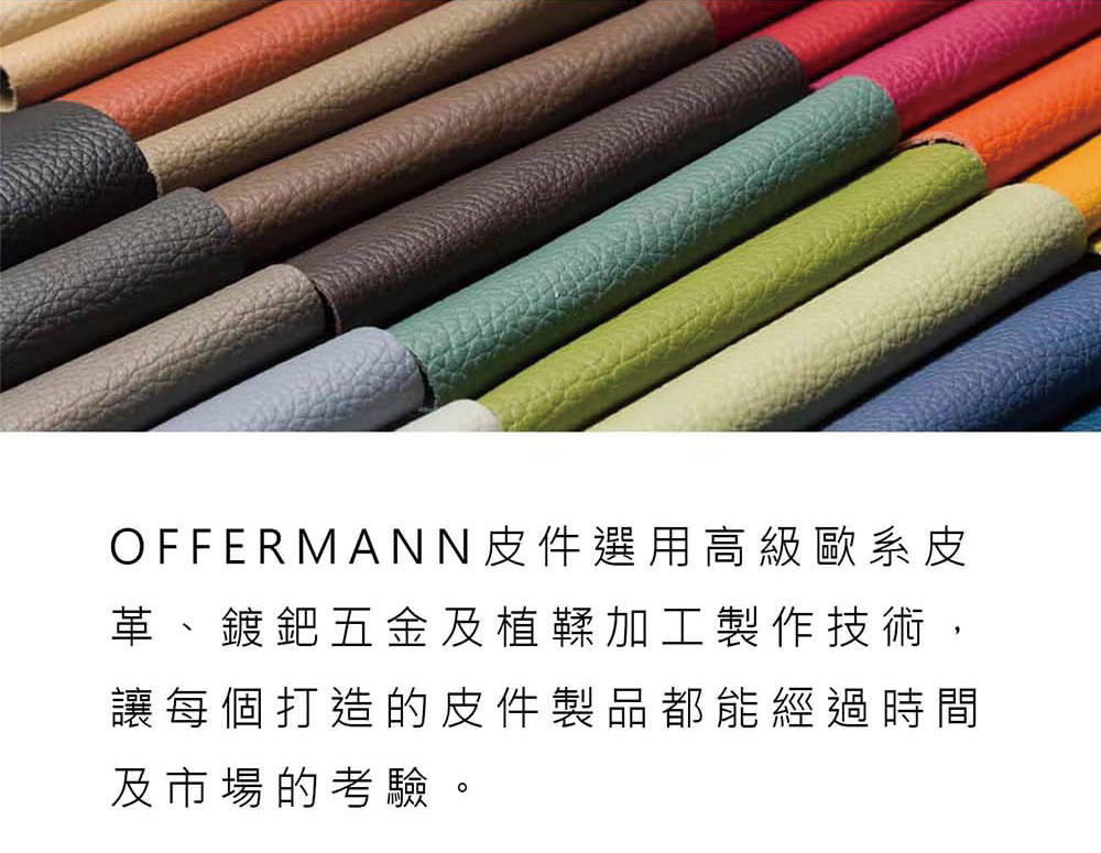 採用精選頭層牛皮,質感印壓OFFERMANN LOGO,輕巧方便、收納卡片、鑰匙與零錢收納包。